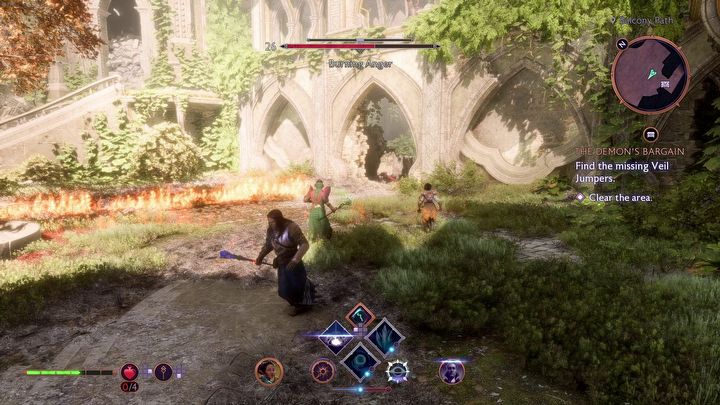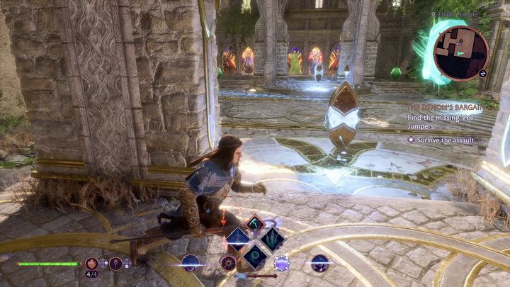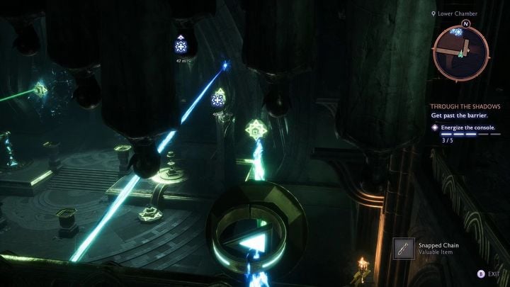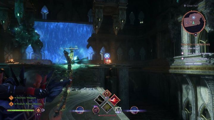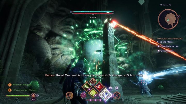 Im letzten Raum findet eine ziemlich lange Dialogszene statt, an der Cyrian und die dämonischen Anaris beteiligt sind. Gleich danach müssen Sie gegen eine Gruppe von Feinden kämpfen. Verwenden Sie Bellarys Fähigkeiten (ausgewählt aus dem Querity Radial -Menü), um zwei Artefakte zu aktivieren, die an den Seiten des Raumes platziert sind.