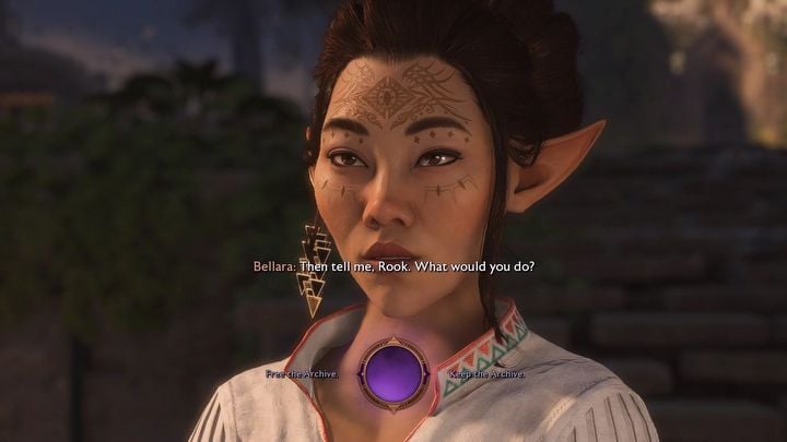 Einige Zeit später wird Bellara im Leuchtturm mit Ihnen sprechen wollen. Sie müssen ihr helfen, zu entscheiden, ob sie das Archiv freigeben soll, um zu verhindern, dass jemand das Wissen für das Böse nutzt, oder es für die Elfen zu behalten.