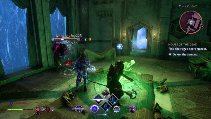 Am Ende des Korridors finden Sie ein Schlafzimmer, in dem ein dämonisches Ritual stattfand. Besiege die Geister, die einen Moment später im Raum erscheinen werden (Geister sind anfällig für Frostschäden).