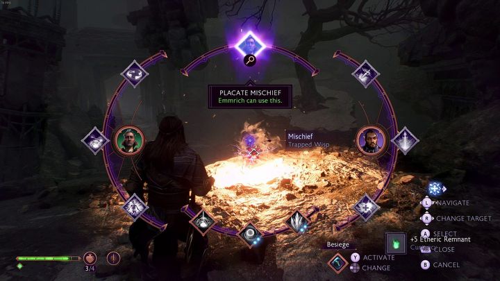 Am Ende der Quest lernen Sie auch Emmrichs besondere Fähigkeit, die spezielle Glocken aktiviert. Bewegen Sie die Kamera über die Glocke und wählen Sie dann die entsprechende Option in der oberen Leiste des Skills -Menüs (Registerkarte oder RB/R1).
