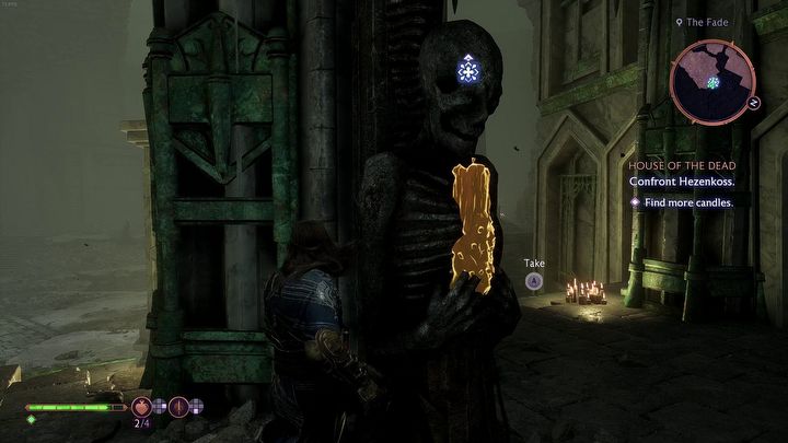 Abgesehen von Gesprächen wird Ihre Aufgabe darin bestehen, den Nekromanten und Lichtkerzen zu folgen. Sie können dies tun, indem Sie sich den markierten Kerzen nähern und die Aktionstaste drücken.