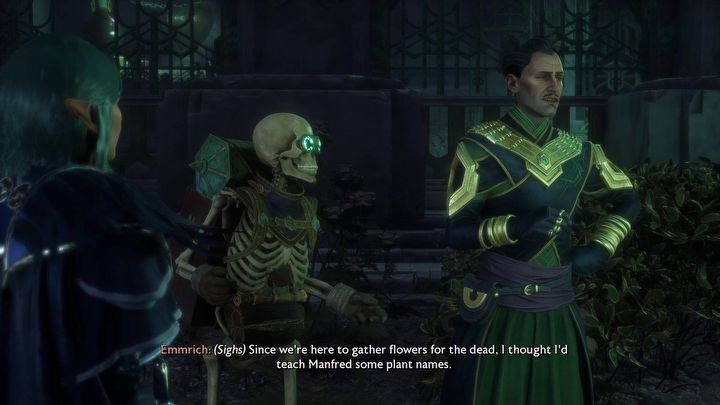 Sie werden in den Necropolis Gardens ankommen. Wenn Sie mit dem Magier sprechen, empfehlen wir Ihnen, Dialogoptionen zu wählen, die Emmrichs Ansichten ergänzen, und diejenigen, die die Geister behandeln, die mit Respekt in den Bereich leben. Dies verbessert Ihre Beziehungen zum Nekromant.
