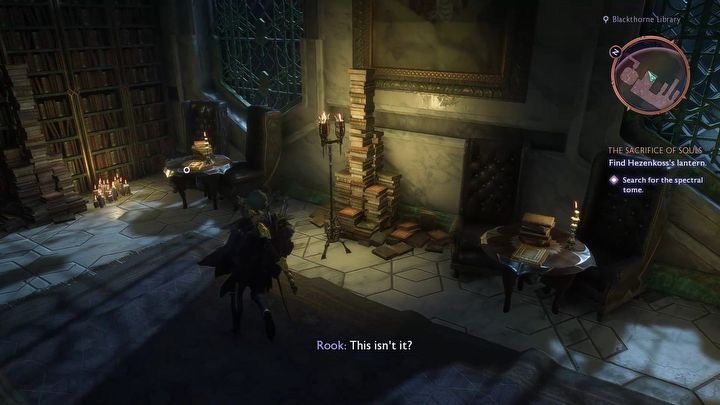 Sammeln Sie den Schlüssel neben der Tür, umgeben von Runen. Öffnen Sie die Tür im Korridor mit Büchern – links von der Runic -Tür.
