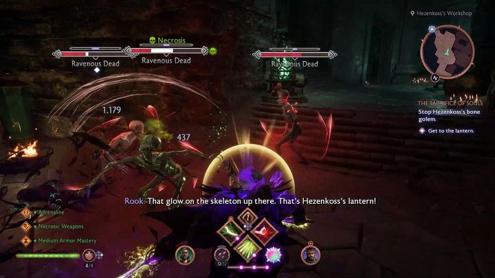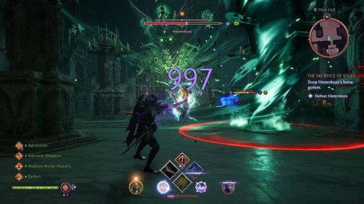 Nach einer kurzen Plattformsequenz treffen Sie Hezenkoss – einen Nekromanten und ehemaligen Freund von Emmrich. Nach einer langen Schnittszene werden Sie von einer großen Gruppe von Feinden angegriffen. Wir empfehlen Ihnen, sich zuerst mit den Fernkampfgefängern zu befassen, die hinten stehen.