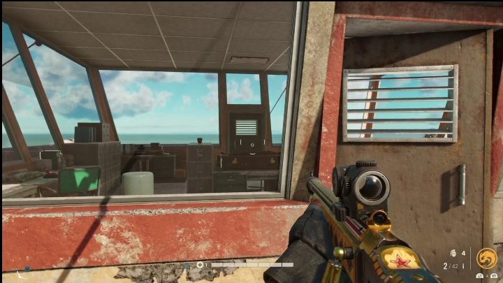 Die Waffenkiste befindet sich hinter dem Lagerhaus, direkt neben dem Wasser. Gehen Sie einfach an der Holzkiste vorbei und blicken Sie auf den Boden.