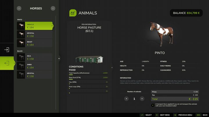 Sie können hier einen bestimmten Zyklus bemerken: Ihre Pferde wachsen erwachsen, reproduzieren und nach dem Erreichen eines bestimmten Alters werden sie verkauft. Auf diese Weise schaffen Sie Platz für zukünftige Fohlen.