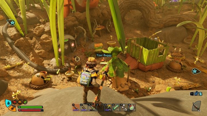 Das Sprechen über Buggy ist eine gute Gelegenheit, um das Solo -Gameplay zu berühren. Wie Sie wahrscheinlich wissen, können die Coop-orientierten Spiele ziemlich markig sein, wenn Sie sich ihnen alleine stellen möchten. Die geerdeten 2 fühlt sich manchmal so an. Wie ich bereits erwähnt hatte, können kämpfe mit größeren Kreaturen schmerzhaft sein (ich spiele auf normalem Schwierigkeitsgrad). Erfassen Sie auch einige Ressourcen. Das Spiel verfügt jedoch auch über einige Funktionen, die Ihnen dabei helfen. Natürlich gibt es Buggy, was eine große Hilfe ist. Aber es gibt noch etwas mehr.