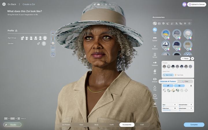 Sie können Ihr Zoi für verschiedene Anlässe anziehen. Und es wäre nicht sehr aufregend, wenn nicht, dass Sie Ihren Outfits, außer für Farben, Mustern hinzufügen und sie sogar erstellen können! Muster können mit AI-generiert werden, was sowohl etwas umstritten ist als auch mit gemischten Erfolgsraten. Aber was super cool ist, können Sie Ihre eigenen Texturen hochladen. Sie können das Muster sogar skalieren, aber leider ist es vorerst nur als geflieste Option erhältlich.
