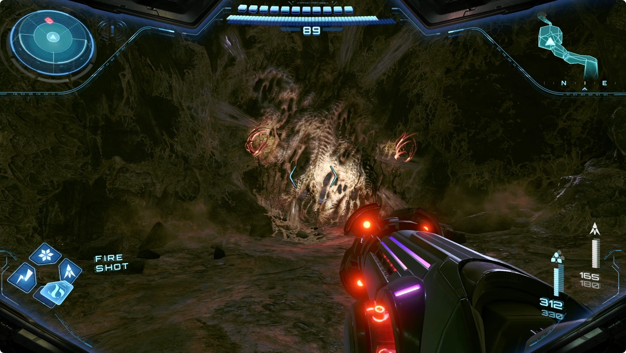 Wenn es tot ist, steckt das Mech-Teil immer noch in seinem Bauch. Morph Ball in sein Maul und in seine Kehle. Wenn Sie im Bauch landen, lassen Sie ein… fallen.