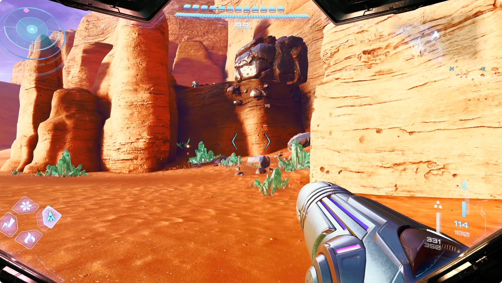Drehen Sie um und passieren Sie das Basislager auf Ihrem Weg zum Altar des Vermächtnisses. Das dritte Upgrade ist der Green Energy Crystal Finder (Gott sei Dank).