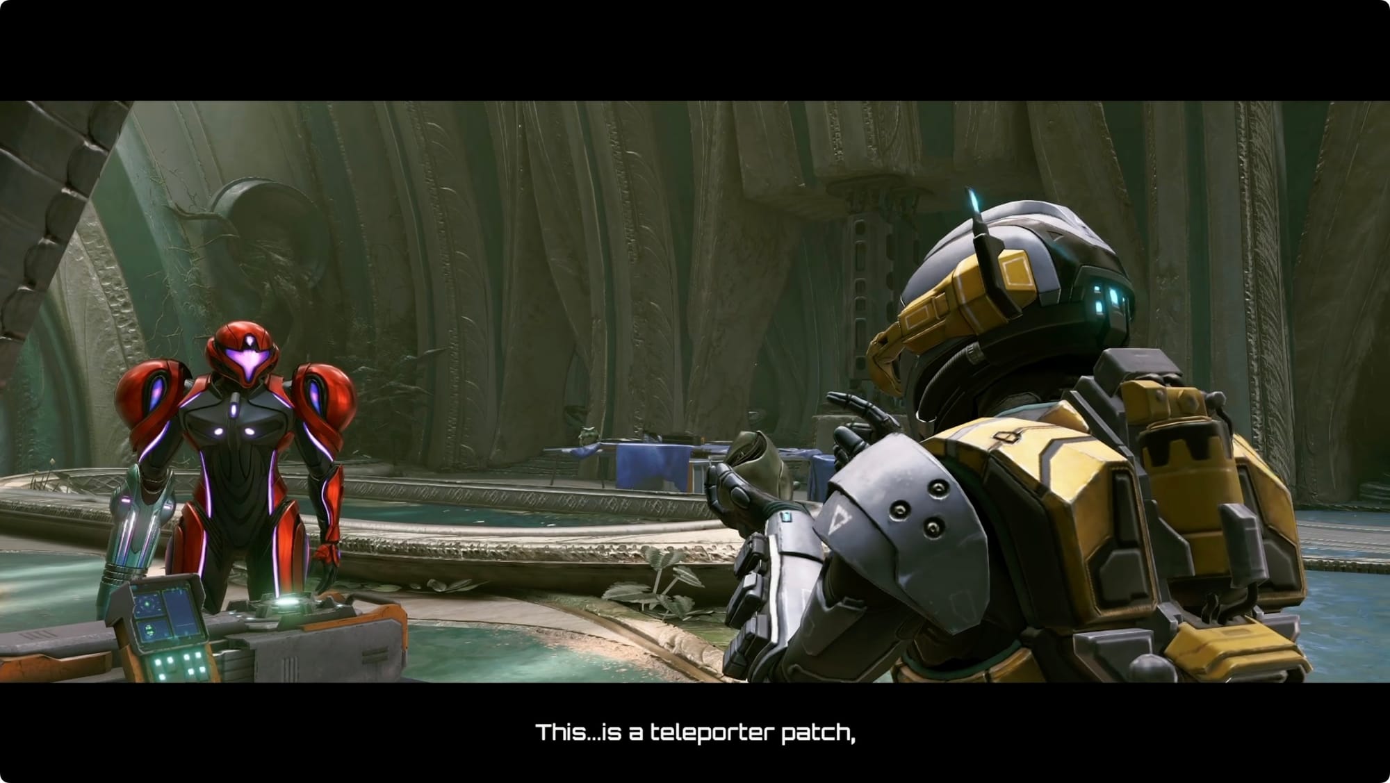 Nähern Sie sich ihm und interagieren Sie, um den Teleport-Patch anzubringen.