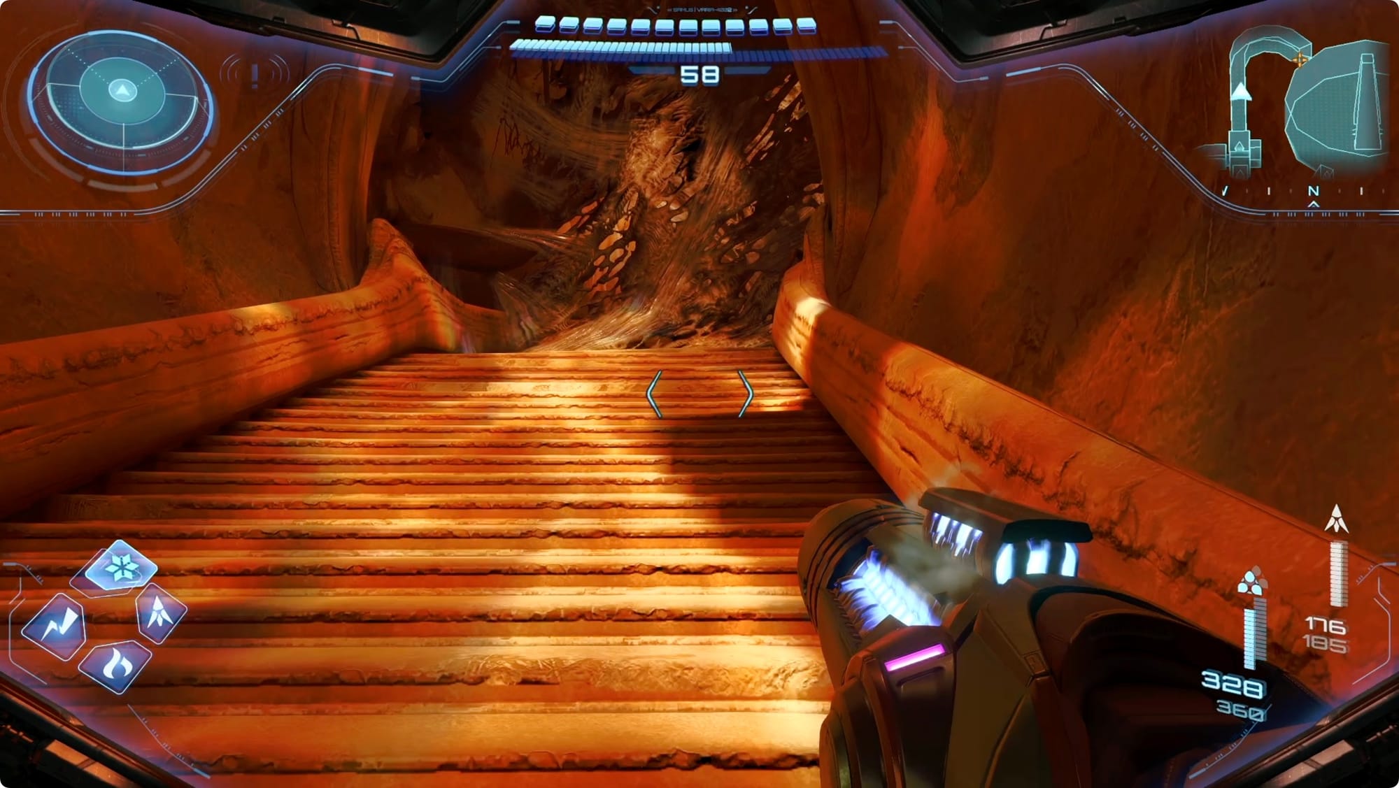In einem Raum im Osten befindet sich zu Ihrer Rechten ein verbessertes Torschloss. Super Missile, schnapp dir die Missile-Erweiterung und kümmere dich um alle Grievers, die auftauchen.