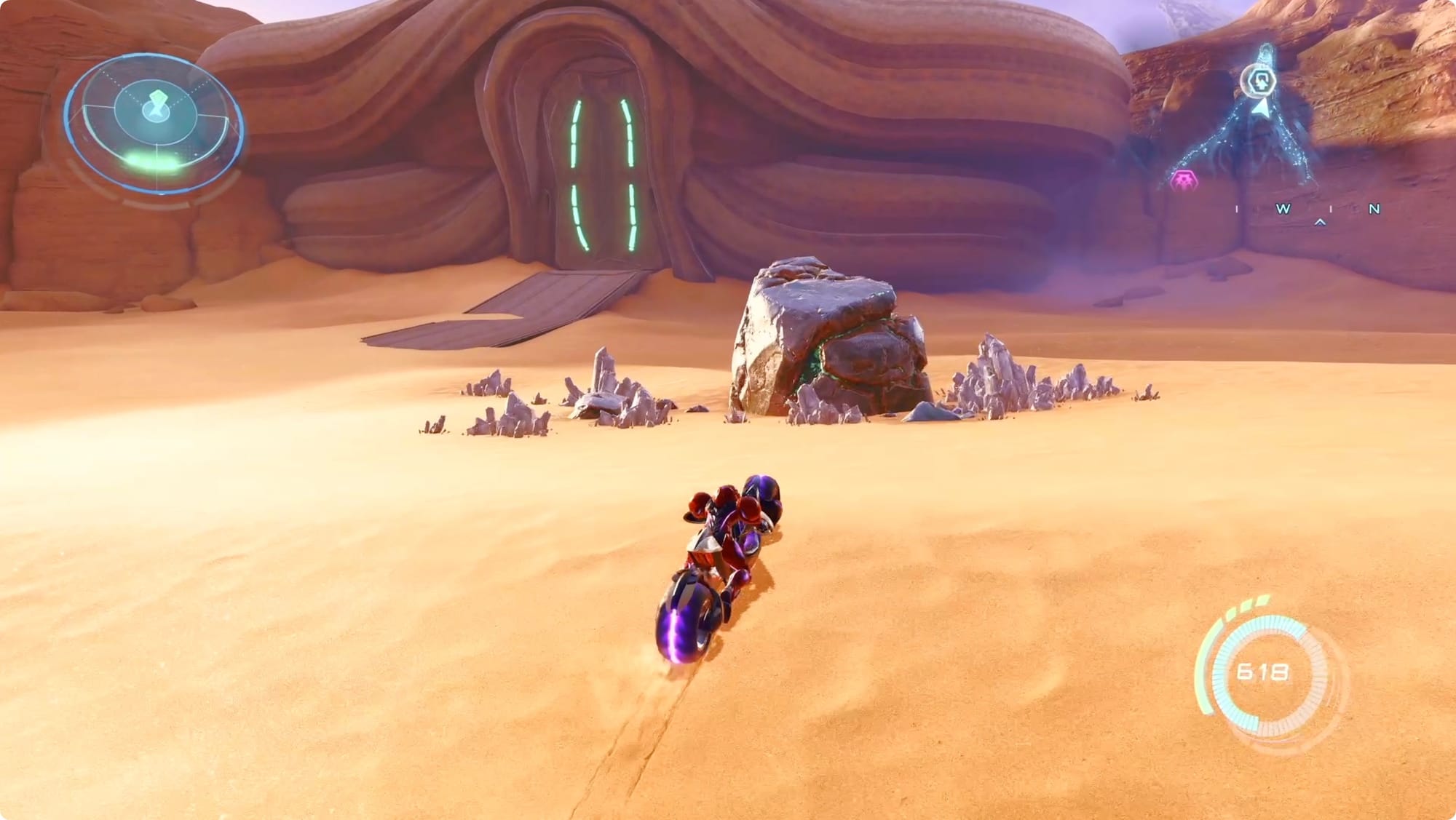 Wenn Sie gehen, schauen Sie sich den Bogen über der Brücke an, um einen geheimen Grapple Node zu finden. Super-Rakete durch die Luke dort oben und in den Tunnel rollen. Am anderen Ende erhalten Sie eine weitere Shot-Erweiterung.