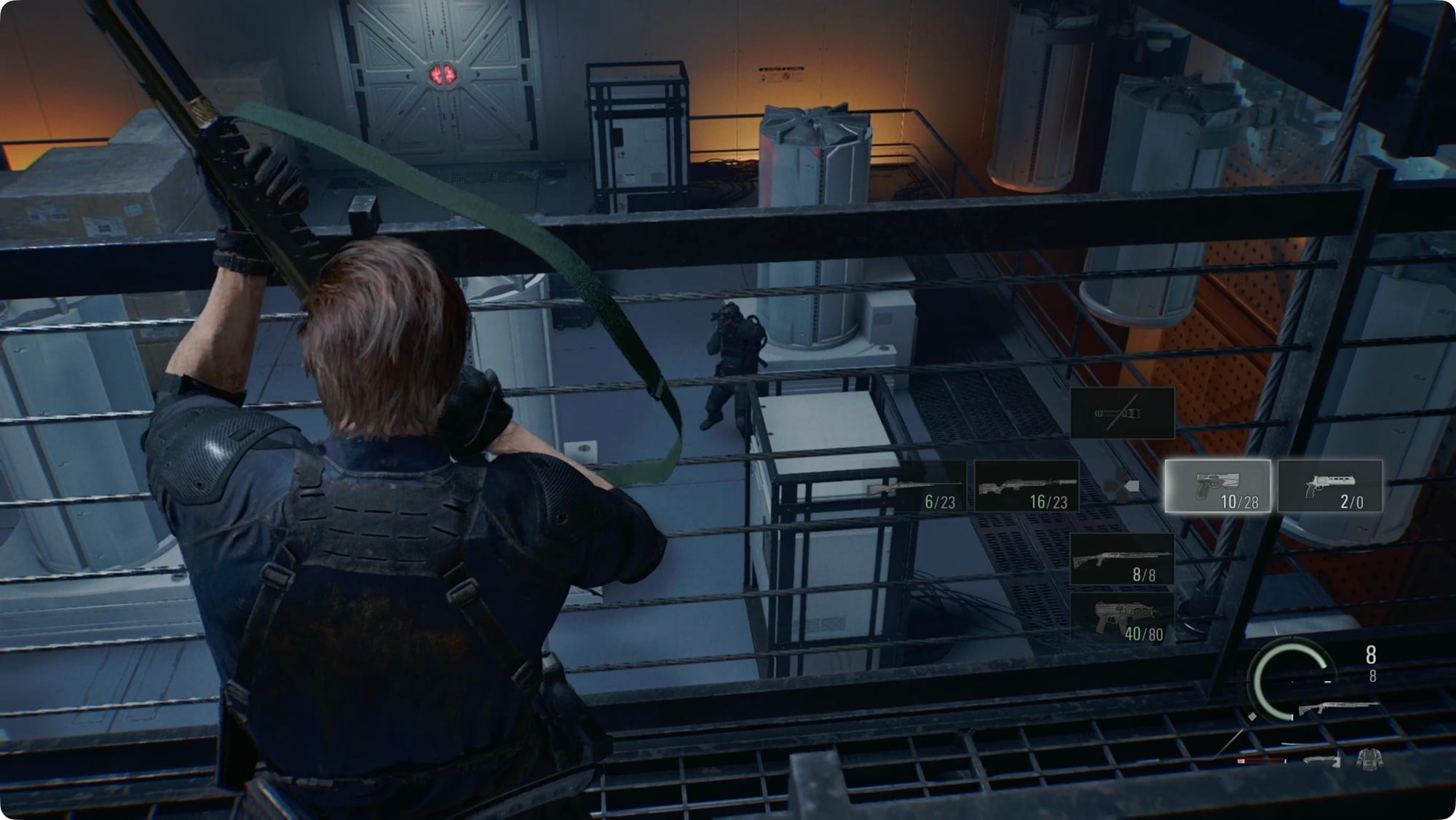 Während Sie auf den Aufzug warten, wird Leon eine weitere Episode haben, während eine kleine Schar Zombies auftaucht. Sobald alle erledigt sind, sammelst du die Munition ein, die sie fallen gelassen haben, und begibst dich dann in die …
