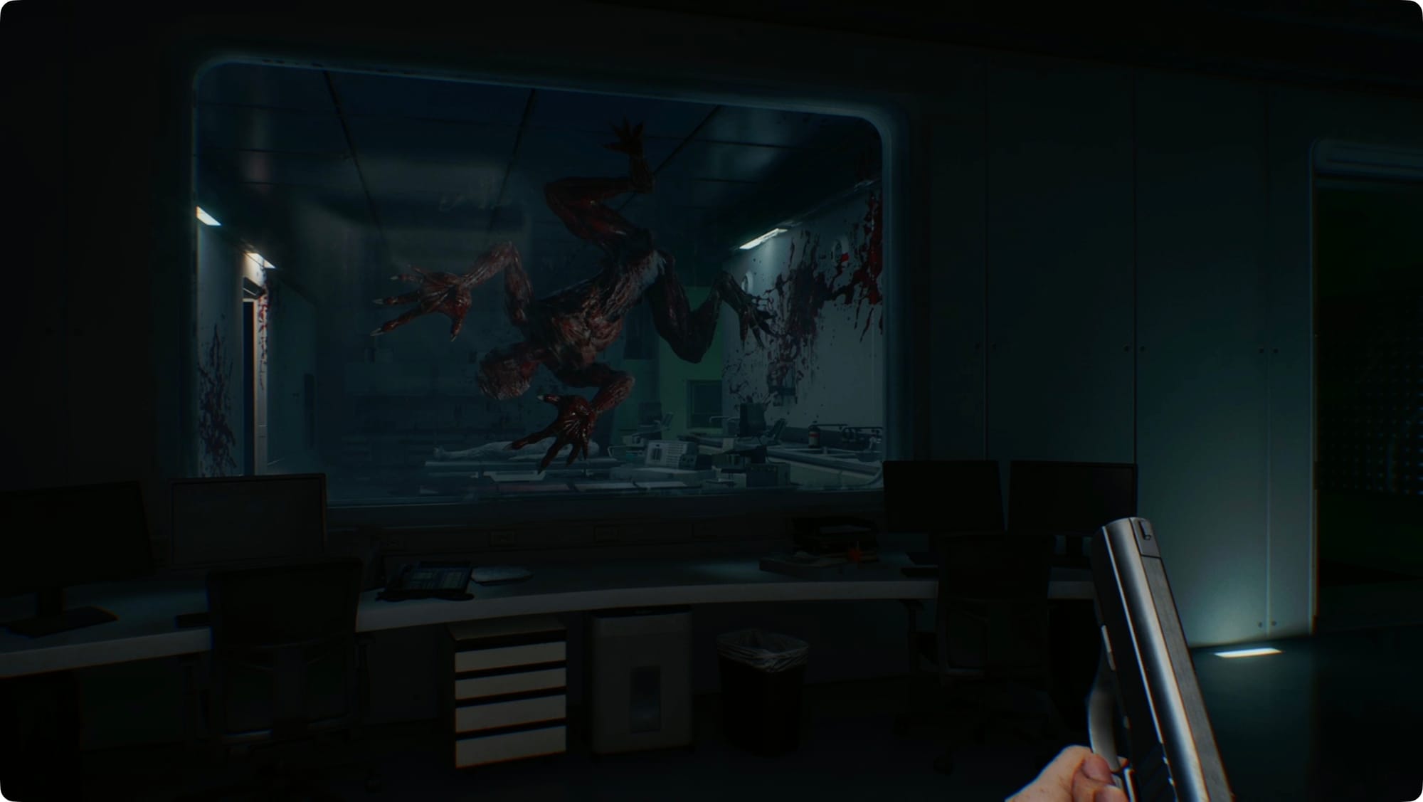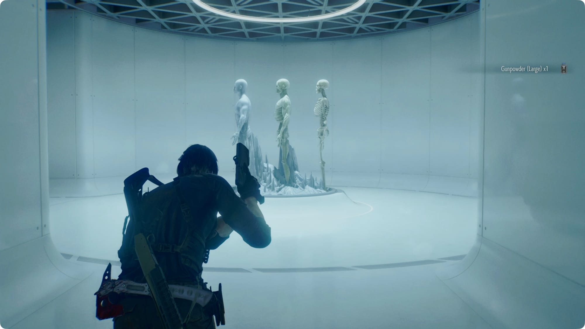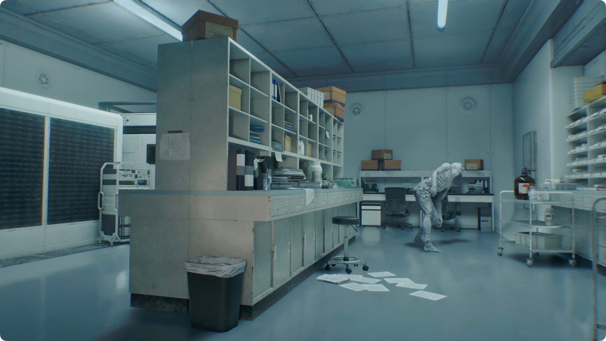 Laufen Sie den ganzen Weg zurück zum Biowaffenlager und stecken Sie dort Ihren neuen Schlüssel in die verschlossene Tür. Sie werden einen Reinraum betreten, der alles andere als einzigartig ist.