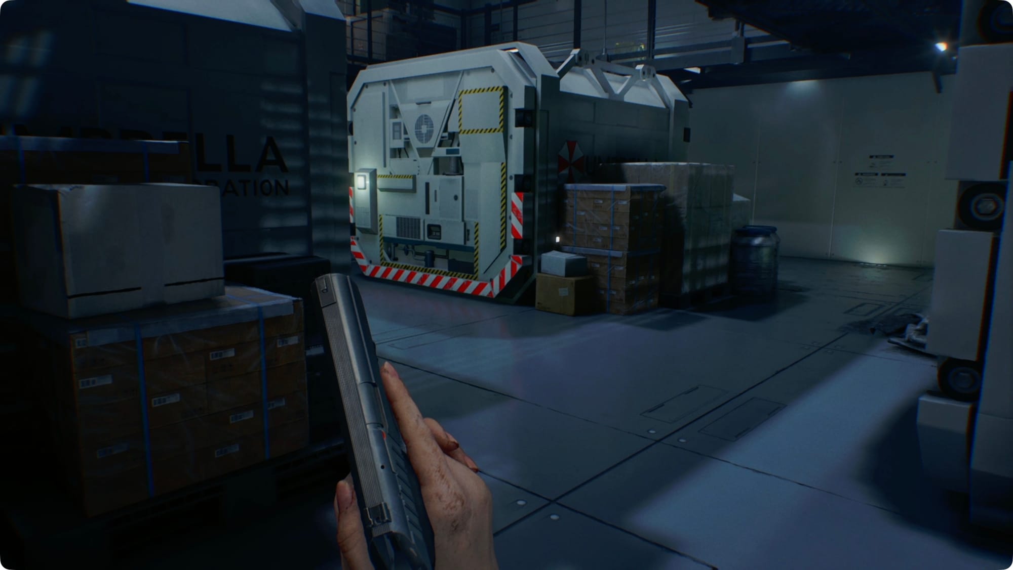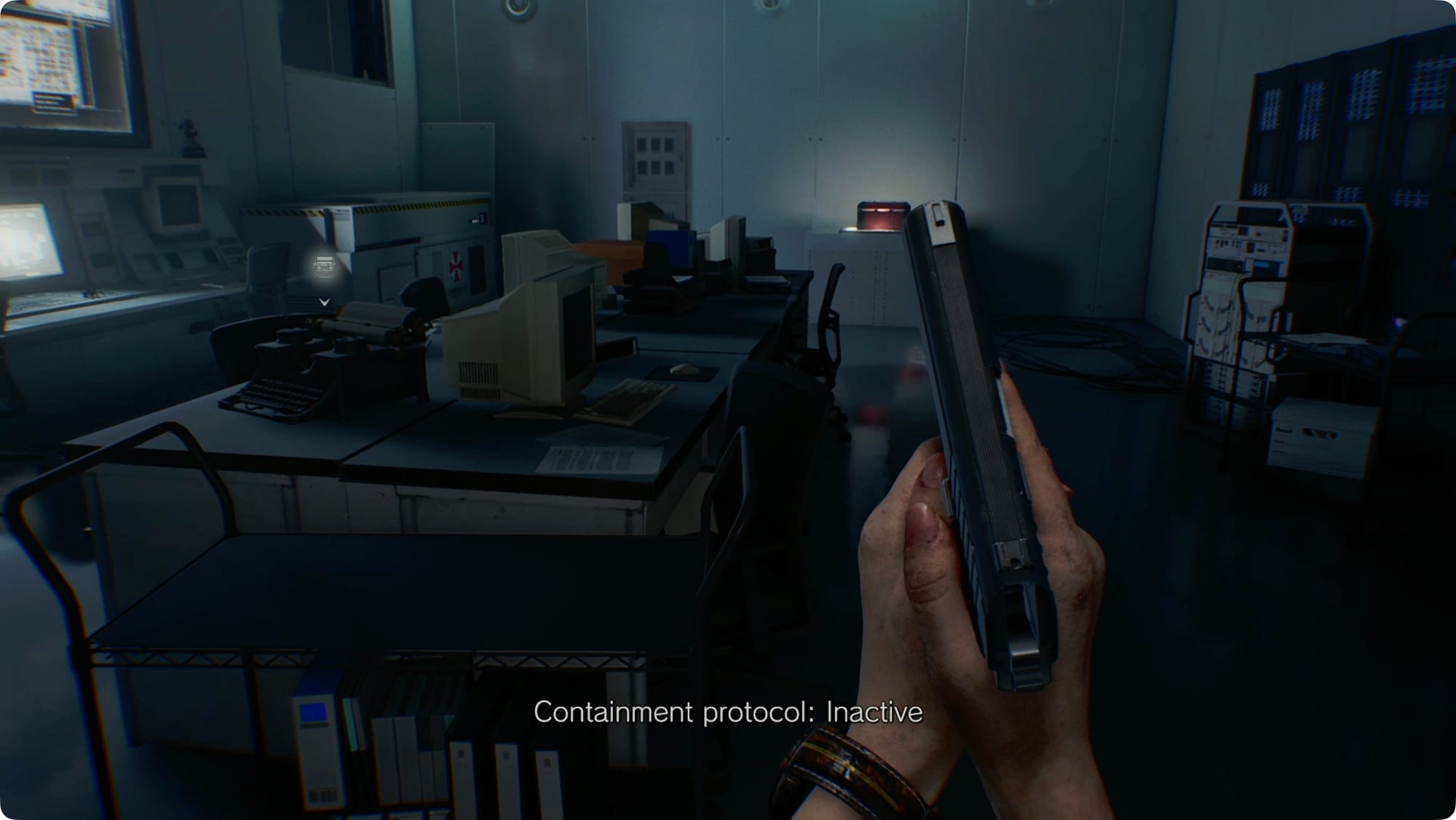 Sehen Sie sich die Wandmonitore für den Produktkatalog 2 (2026), den Produktkatalog 1 (2026) und den Raccoon City Bioweapon Research – Report an. Zerschmettere die Kisten, um zwei Kisten Handfeuerwaffenmunition zu erhalten.