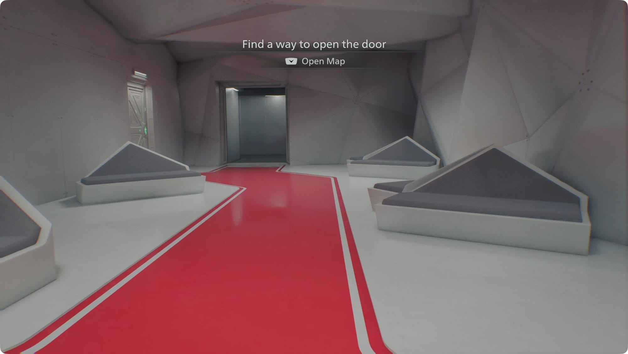Interagieren Sie mit dem Bedienfeld und gehen Sie dann durch die Tür an der Südwand.