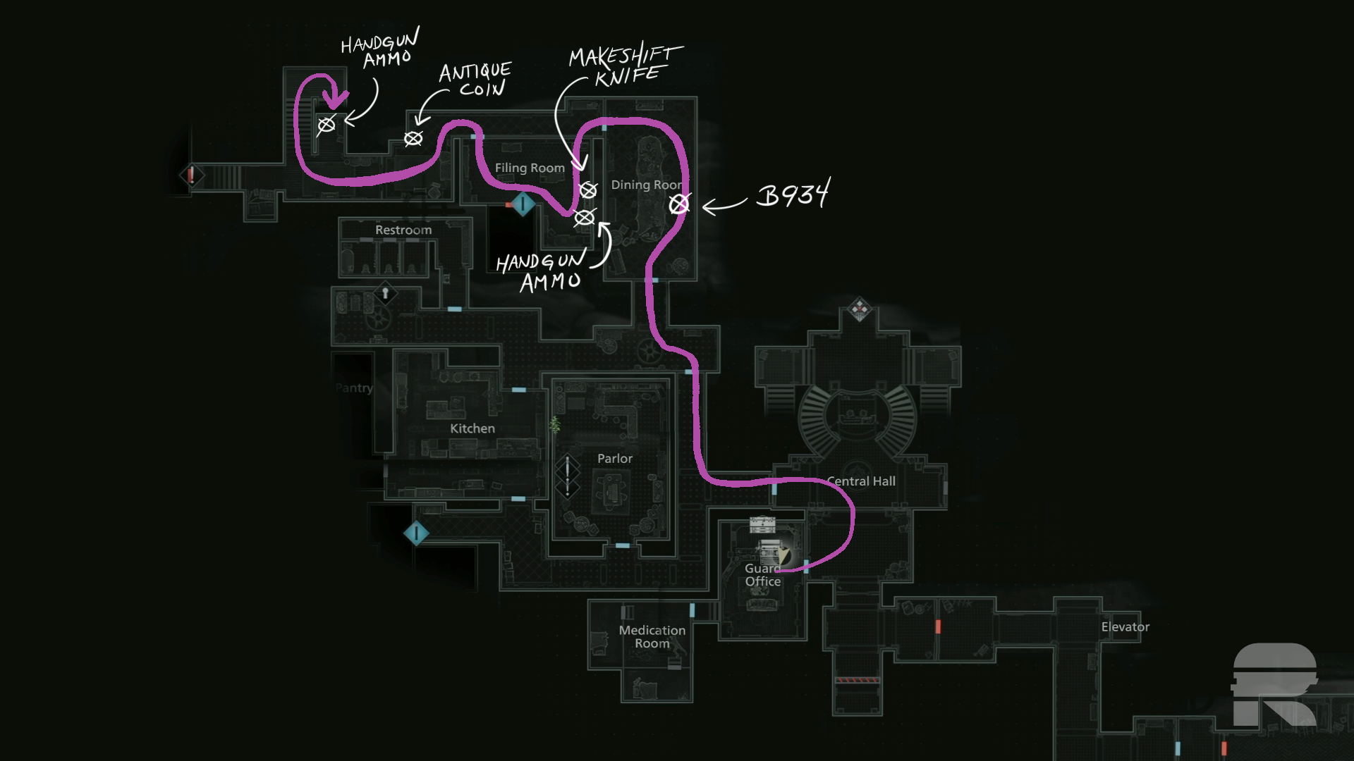 Kaufen Sie mit den Münzen den Hüftbeutel und gehen Sie dann erneut zum Speichern (denken Sie daran, nach dem Metzger Ausschau zu halten). Im nächsten Reiseführer befassen wir uns mit dem Ostflügel.