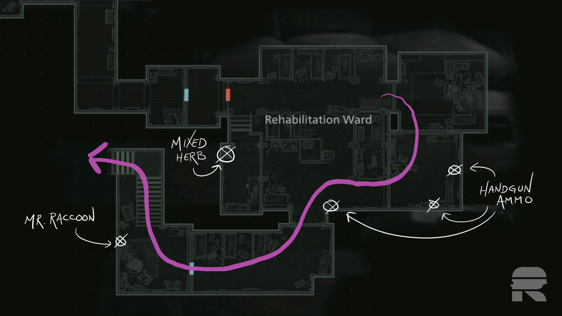 Im Hauptraum der Rehabilitationsstation steht an der Südwand eine weitere Kiste mit Pistolenmunition. Suchen Sie auf der anderen Seite des Raums entlang der Westwand nach einem weiteren Schrank mit einem gemischten Kraut (G+G).