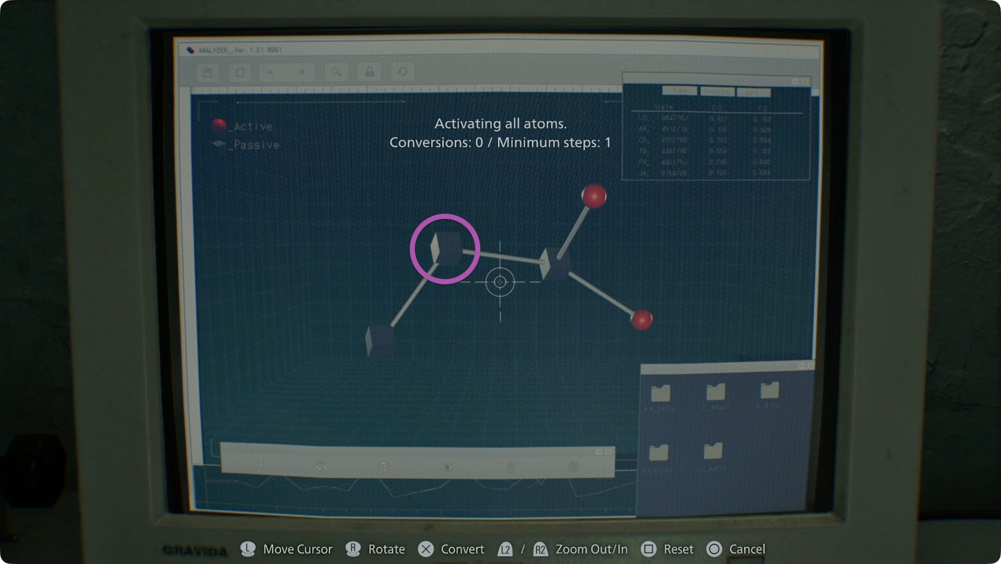 Es gibt ein schnelles Minispiel, bei dem Sie Atome zum Leuchten bringen müssen. Es ist schwer zu erklären, aber Sie werden die Art des Rätsels erkennen, wenn Sie es sehen. Klicken Sie einfach auf den zweiten von links.