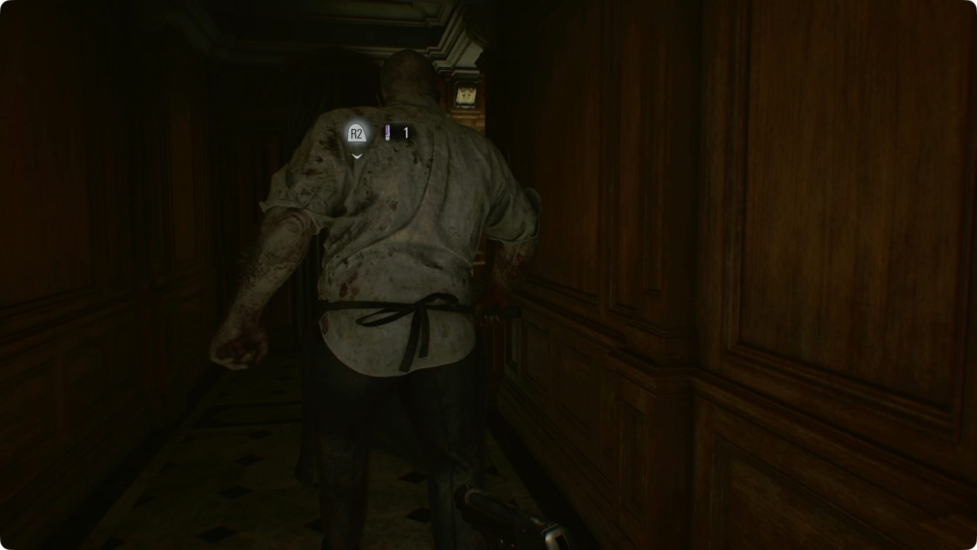 Öffne die nach Westen führende Tür und gehe zurück zum Westflügel. Halten Sie im ersten Flur inne, bis Sie wissen, wo der patrouillierende Metzger ist. Warten Sie, bis er vorbei ist, und verabreichen Sie ihn dann mit dem Hämolytischen Injektor. Er wird den Pantry-Schlüssel fallen lassen.