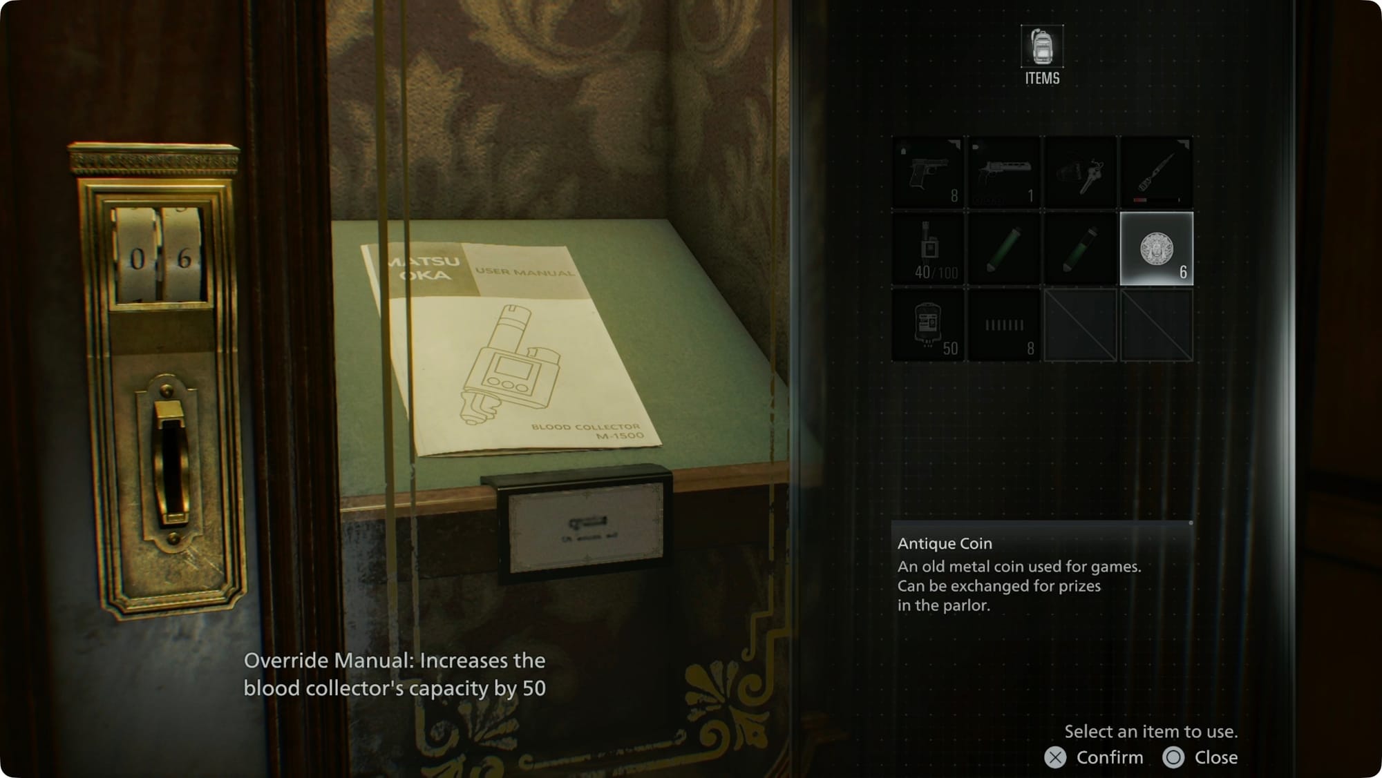 Gehen Sie in den Salon und kaufen Sie das Override-Handbuch für die sechs antiken Münzen, die Sie haben. Dadurch erhöht sich die Blutmenge, die Sie sammeln können.