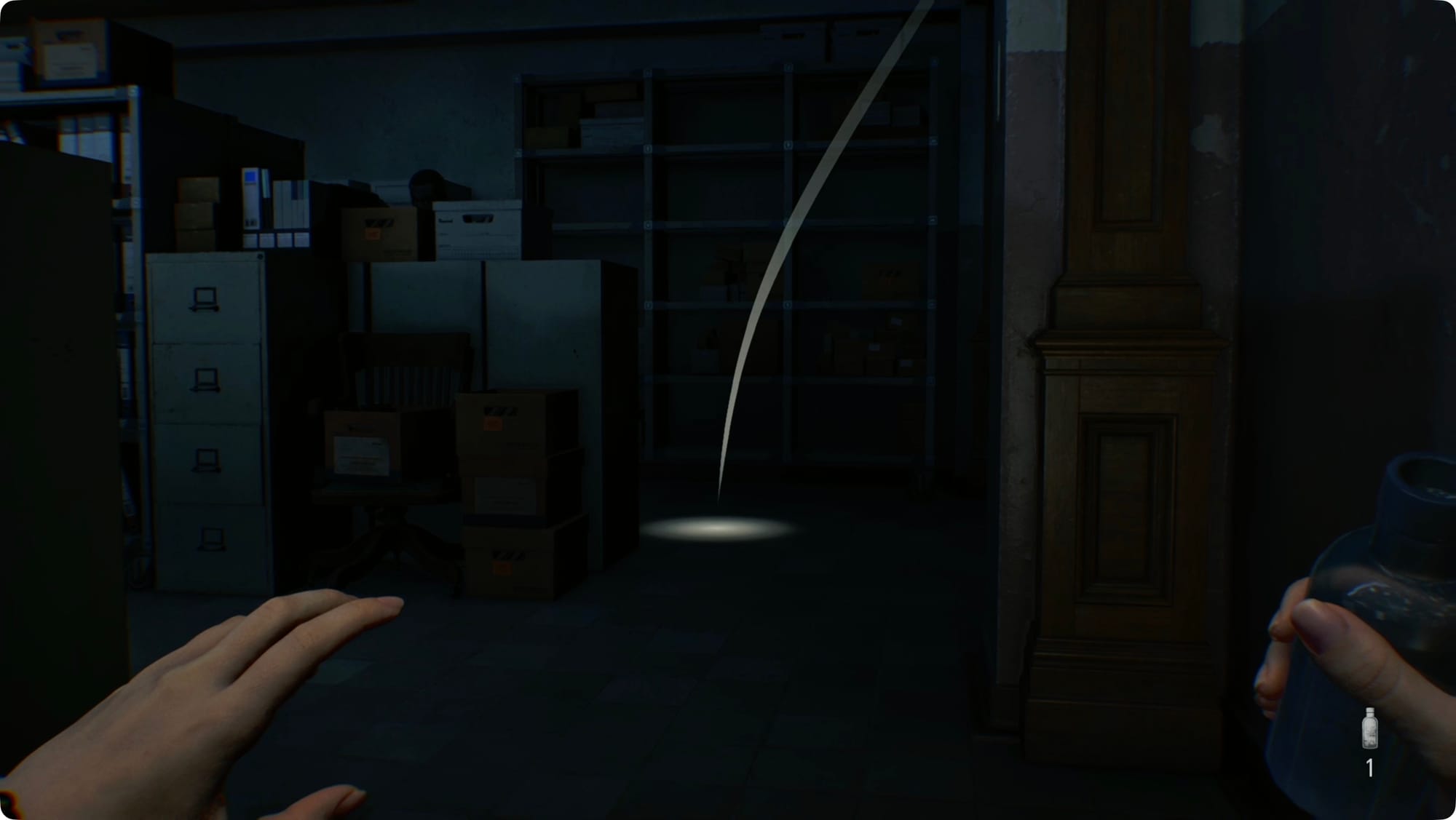 Gehen Sie zurück in den Ostflügel und durch das Esszimmer zum Aktenraum. Sie sollten klar sein, aber möglicherweise müssen Sie einen Zombie im Aktenraum niederlegen.