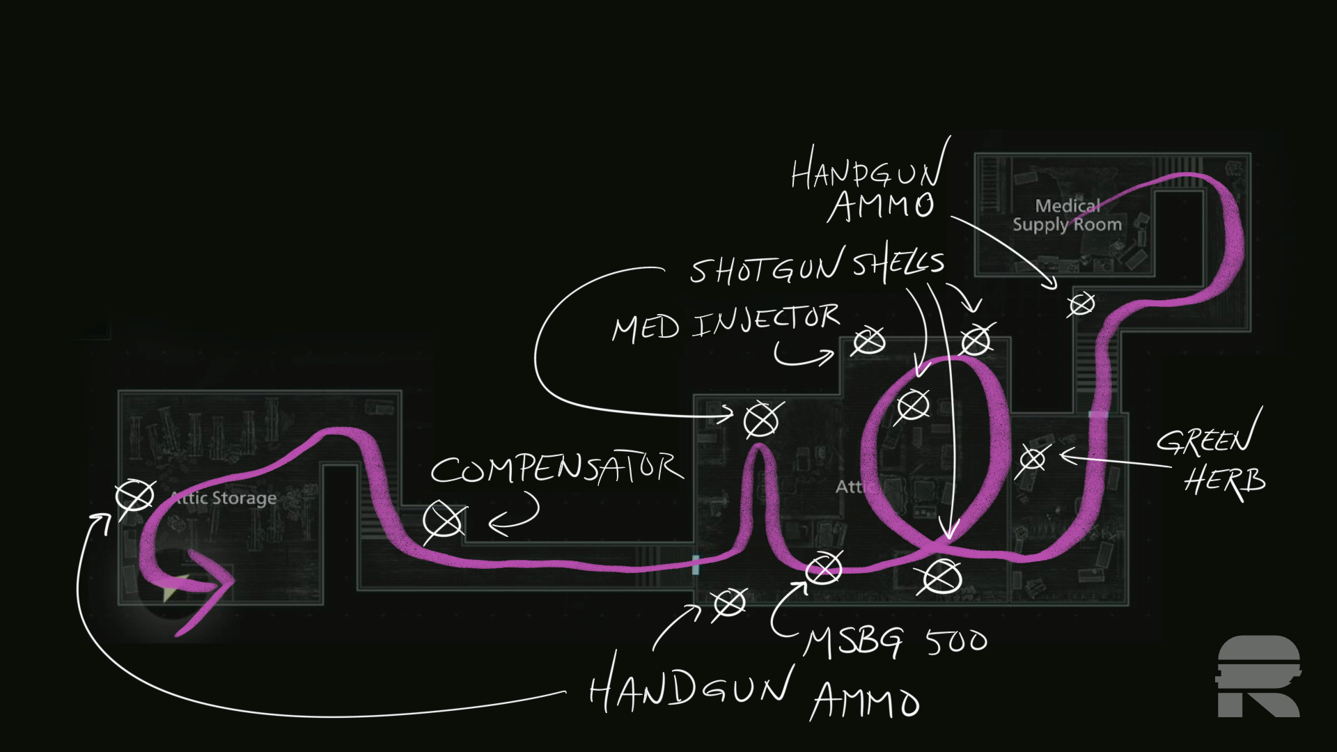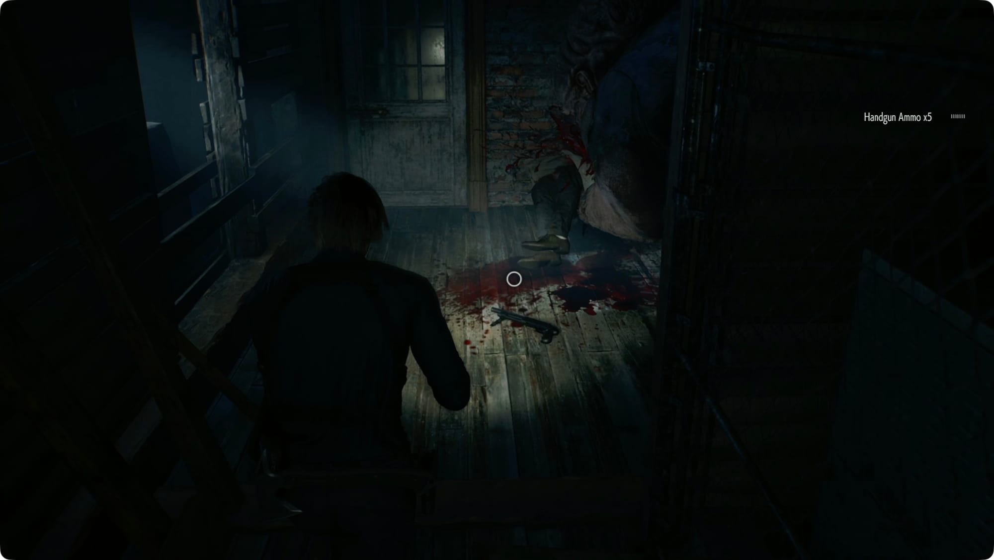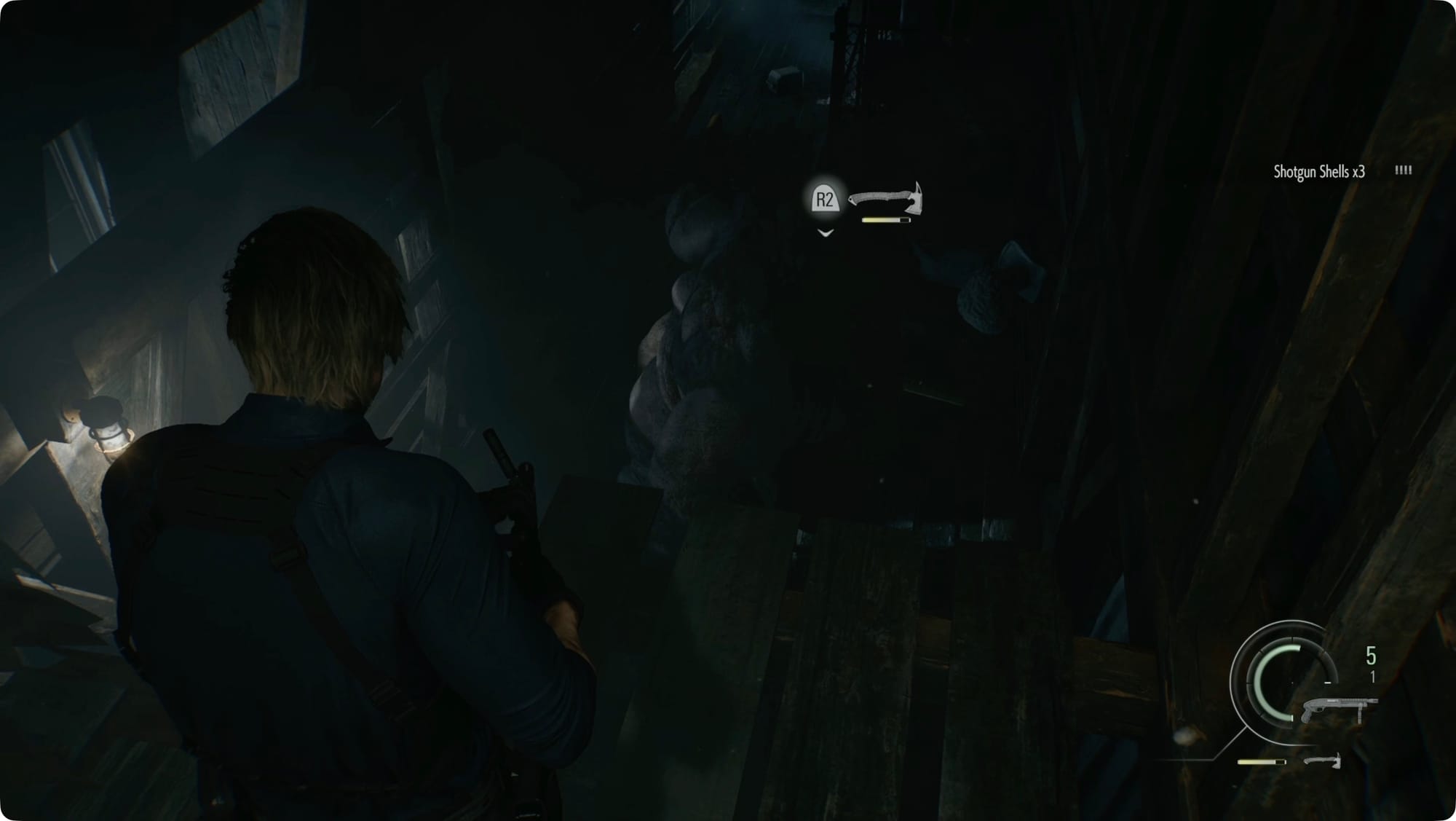 Auf dem eigentlichen Dachboden werden auf Ihrer Karte einige Schrotpatronen angezeigt, aber Sie können sie noch nicht bekommen. Biegen Sie rechts ab und umrunden Sie den Raum, um sich noch mehr Pistolenmunition zu schnappen.