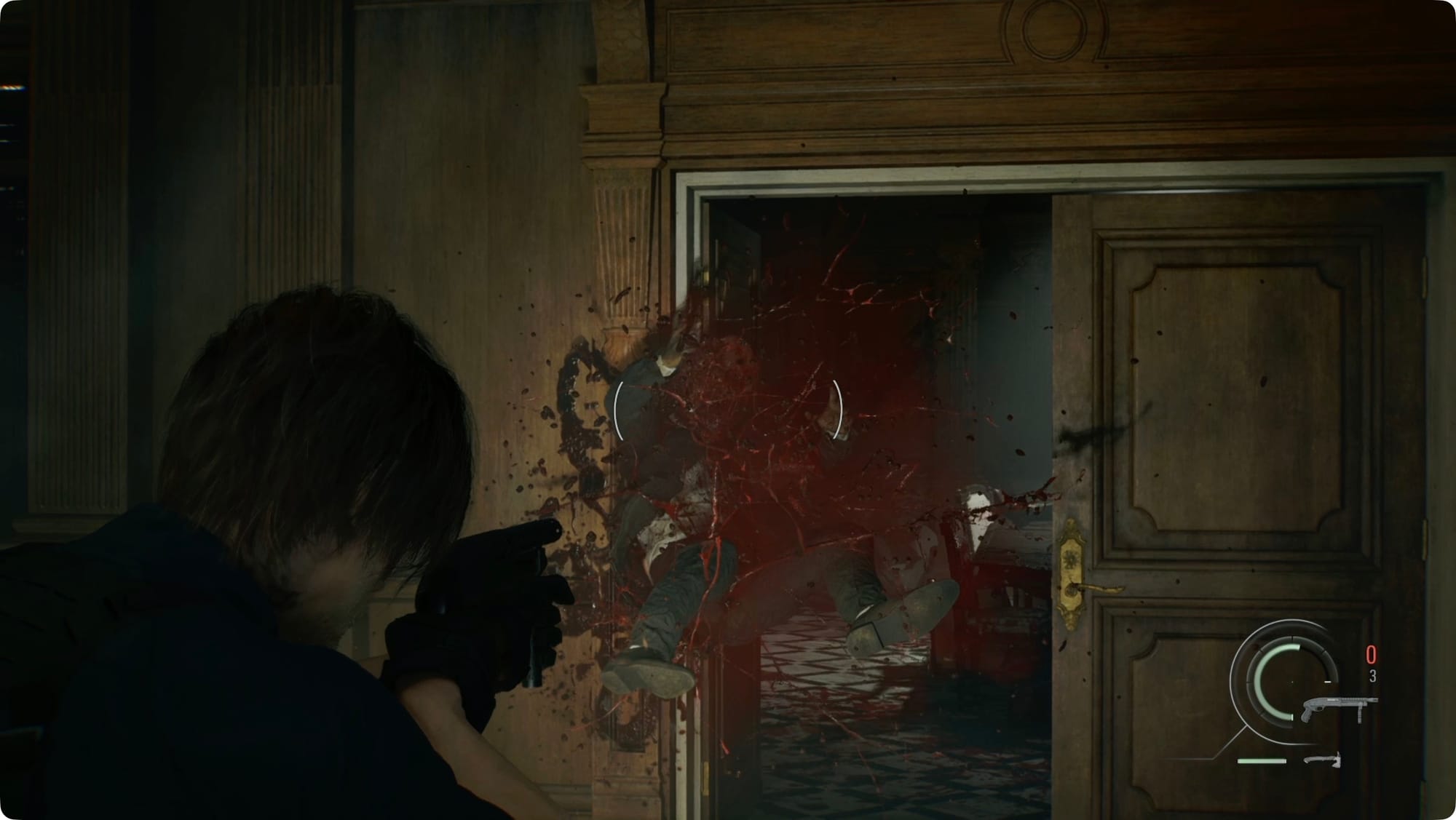 Wenn er dich verfolgt, ist das eine großartige Gelegenheit, ihm öfter ins Gesicht zu schießen, und Leon bekommt einen coolen Actionhelden-Finisher.