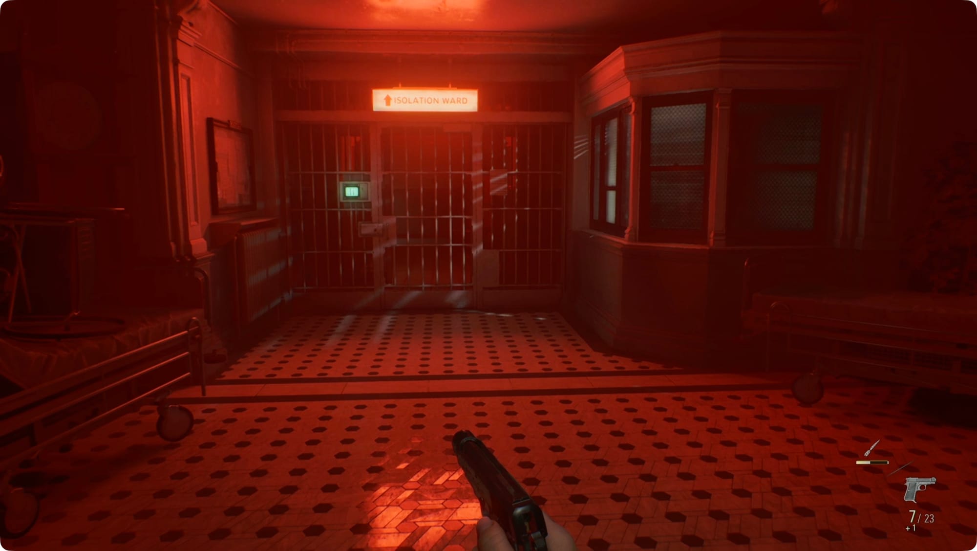 Nach Ihrem netten Gespräch mit Victor gibt es für Sie nur noch einen Weg vorwärts. Zerschlagen Sie am Ende der ersten Halle die Kiste, um etwas Handfeuerwaffenmunition zu erhalten. Im nächsten Raum finden Sie ein grünes Kraut. Bevor Sie sich unter dem umgestürzten Schrank hindurch ducken, biegen Sie links ab, um zu den Krankenakten zur Sättigungsunterdrückung zu gelangen.