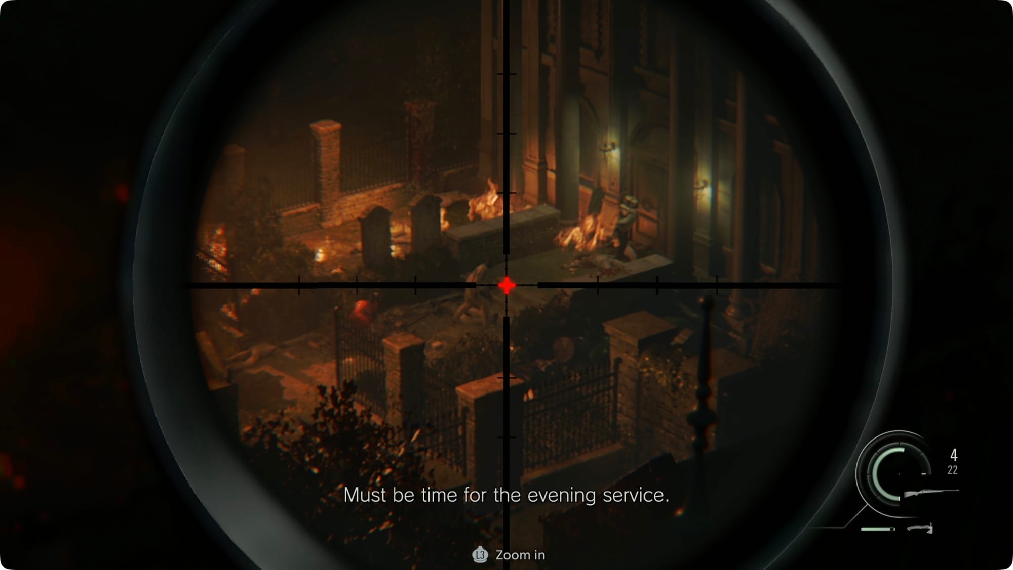 Du musst sie beschützen, während sie versucht, in die Kirche zu gelangen. Halten Sie einfach Ausschau nach Zombies und planen Sie Ihre Nachladevorgänge für die Lücken. Nach ein paar Winken taucht ein weiterer Metzgerzombie auf. Er wird mehrere Schüsse brauchen, um ihn niederzuschlagen, also geben Sie ihm Vorrang – Grace wird nicht überleben, wenn er in die Nähe kommt. Jetzt ist die Zeit für das explodierende Fass, wenn Sie es brauchen.