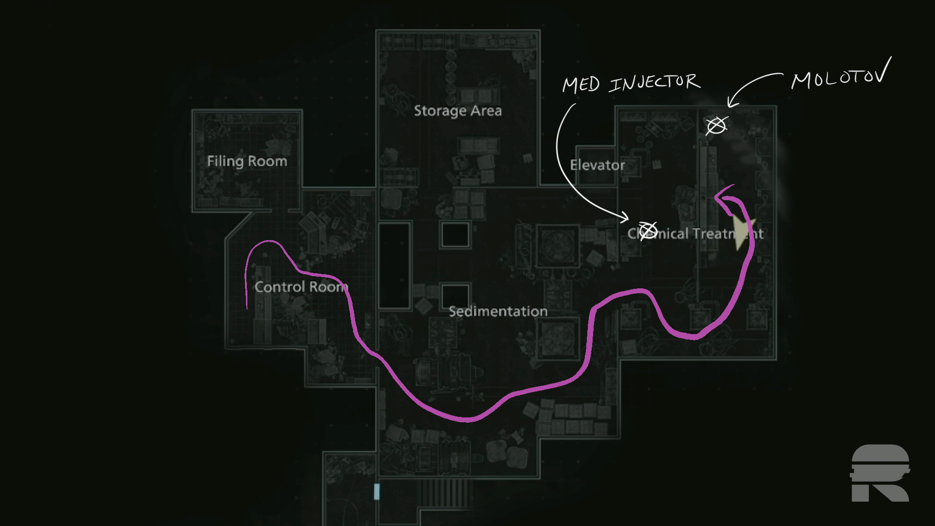 Auf dem Rückweg, kurz bevor Sie die chemische Behandlung verlassen, befindet sich rechts auf den Fässern ein Medikamenteninjektor.