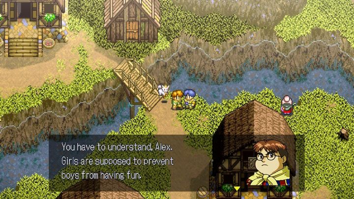 Zum Beispiel in einem der ersten Abenteuer, der stoische Möchtegern-Held Alex Alex, seiner Adoptivschwester (die auch seltsam in ihn verliebt ist), Luna, der unerklärliche Talent-Tierbegleiter Nall und Alex 'geldliebender Freund Ramus wagen sich in eine Eishöhle, um einen Schatz aus einem Drachen zu finden. In der Höhle trifft die Party Dutzende von Monstern. Alle drei Menschen spielen in jedem Kampf eine wesentliche Rolle. Ramus hat keine besonderen Bewegungen wie die anderen, aber an vielen Punkten schadet er mit seinem Grundangriff mehr Schaden als sogar Alex. Nachdem Nall in das Dorf zurückgekehrt war, beschreibt Ramus, dass er „mehr über Snacks als tatsächlich bei der Kampfmonster hilft“, was für mich absolut hohl klingelte. Es fühlte sich eher so an, als würden die Autoren einen Witz über einen stereotypen Charakter erzwangen, als über das Spielerlebnis zu denken.