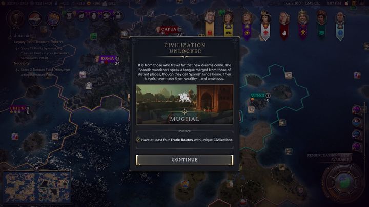 In der Praxis beträgt jede Sitzung in der siebten Folge jetzt drei separate Kurven. In jedem Alter errichten wir neue Städte, investieren in Wissenschaft und Kultur, kümmern sich um die Wirtschaft und kämpfen mit anderen Ländern. Dies ist natürlich ein Standard, der aus jeder früheren Ausgabe der Serie bekannt ist. Diesmal hängt die Legacy -Mechanik jedoch auch über dem Spieler. Dieser Mechaniker ist in vier Wege unterteilt (wissenschaftlich, wirtschaftlich, militärisch und kulturell) und kommt realistisch auf eine Reihe von „Quests“ an, die wir im nächsten Alter auf Boni erhalten müssen. Das Spiel besagt eindeutig, dass dies eine optionale Funktion ist und es keinen falschen Weg gibt, Zivilisation zu spielen. Mit ihnen riskieren wir Probleme in der nächsten Zeit (zumal die KI immer versucht, die genannten Quests abzuschließen).